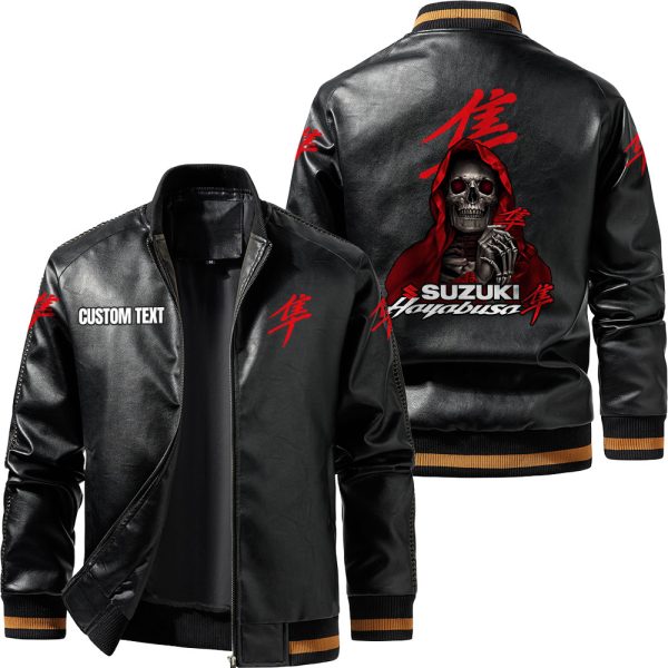 Suzuki Hayabusa Stand Collar PU Leather Jacket Customize Name, Customize Logo Car or Motorcycles model Skull